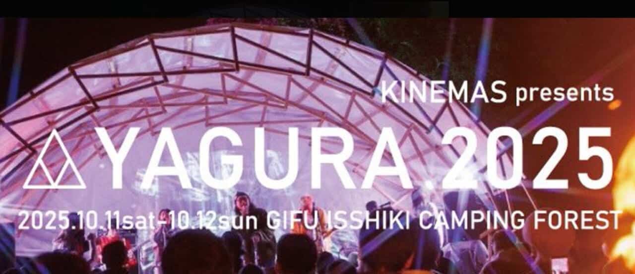 音楽バンド「KINEMAS」が主催するキャンプ型音楽フェスティバル「YAGURA 2025」が、2025年10月11日(土)〜10月12日(日)の2日間、岐阜県の「一色の森キャンプ場」で開催されます。