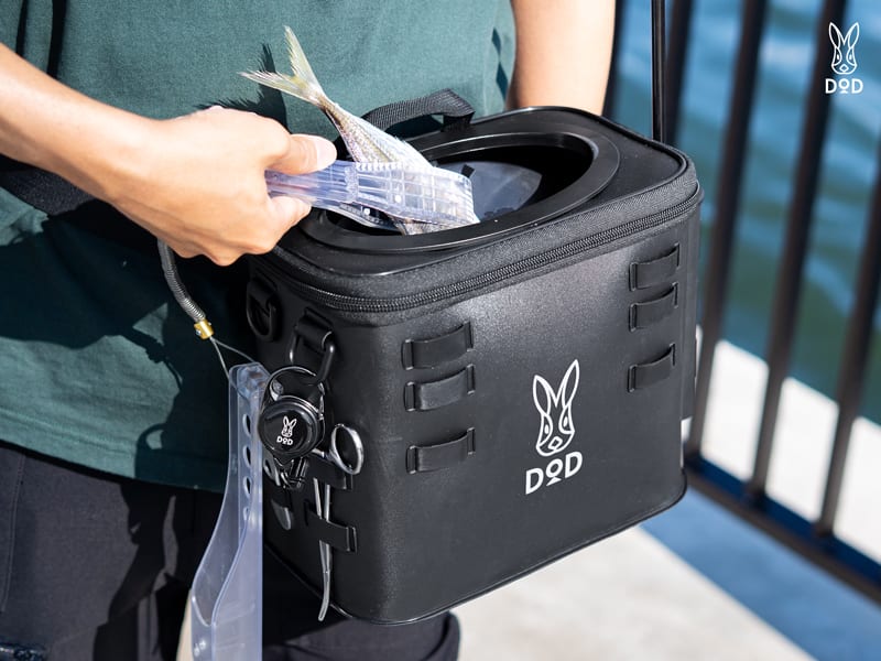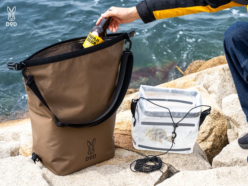 ロールアップ式で、水や汚れ、ニオイをしっかり密閉し、釣った魚や飲み物を清潔に持ち運べます。