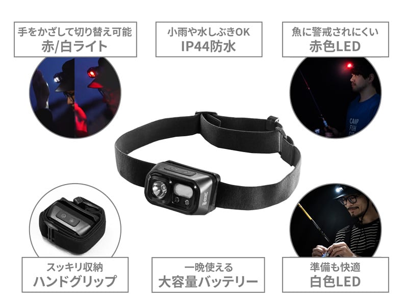 手をかざすだけで色を切り替えられるライトは、釣りの快適さが格段に向上します。