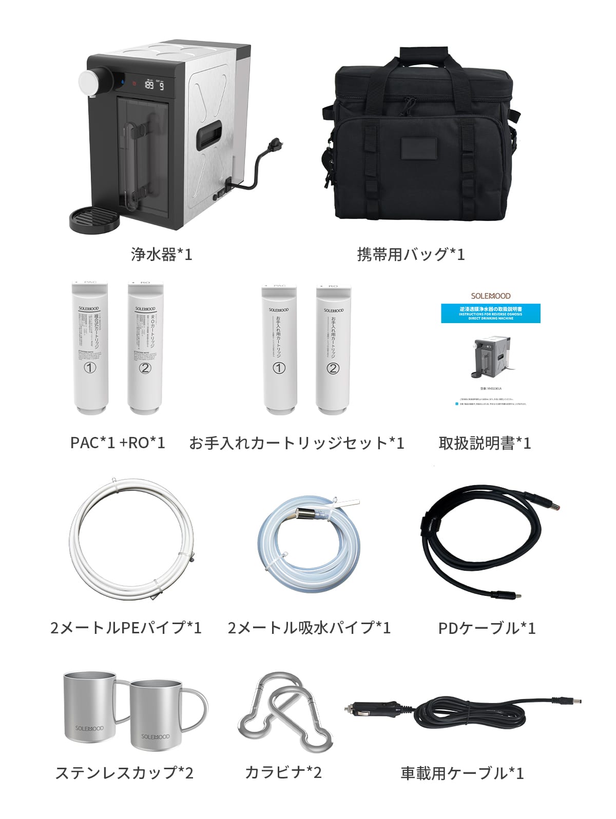 「SOLEMOOD PURE BOX」があれば、アウトドアで手軽に安全な飲料水を確保できます。