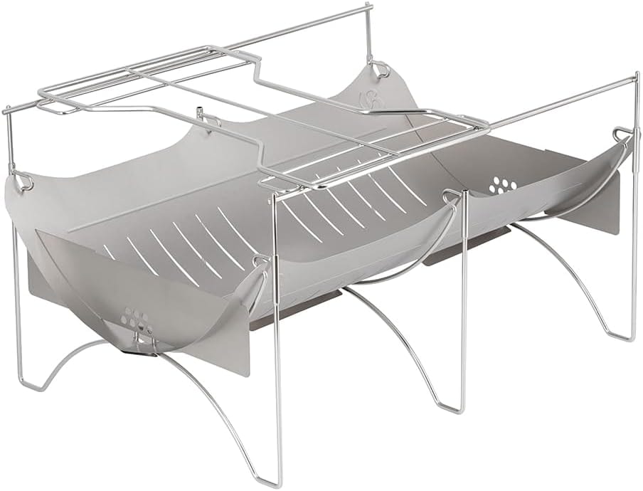 チタン製の軽量焚き火台は、グループや長期滞在のキャンプに最適です。