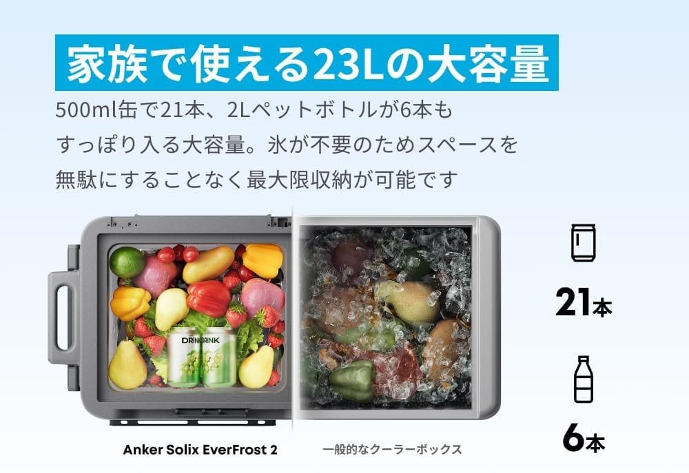 ガジェットメーカー「Anker」から、ポータブル冷蔵庫「Anker Solix EverFrost 2 Electric Cooler」が登場しました。