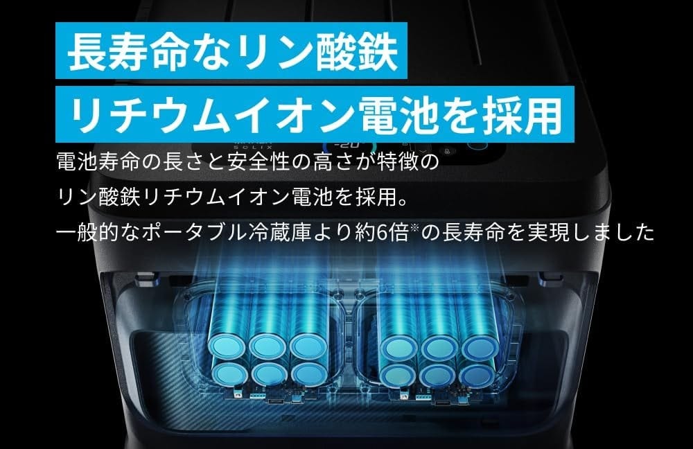 一般的なポータブル冷蔵庫の約6倍にあたる長寿命です。