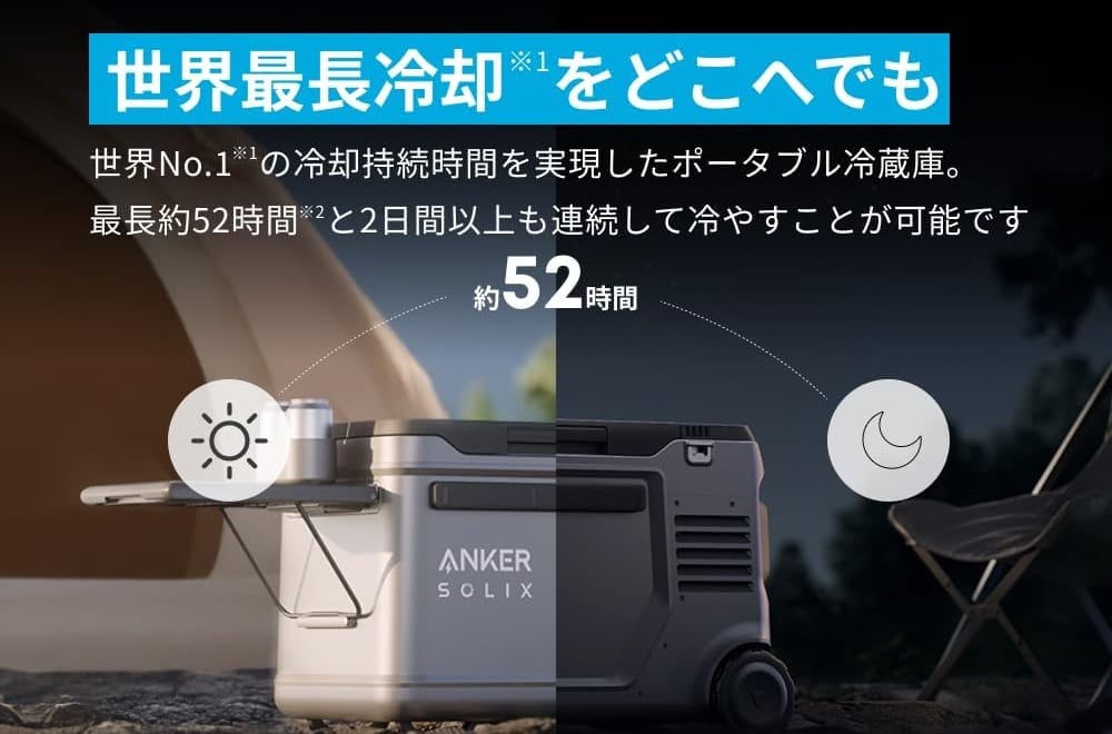 「Anker Solix EverFrost 2 Electric Cooler」は、長時間の使用でも安心の冷却持続力とポータブル性を兼ね備えています。