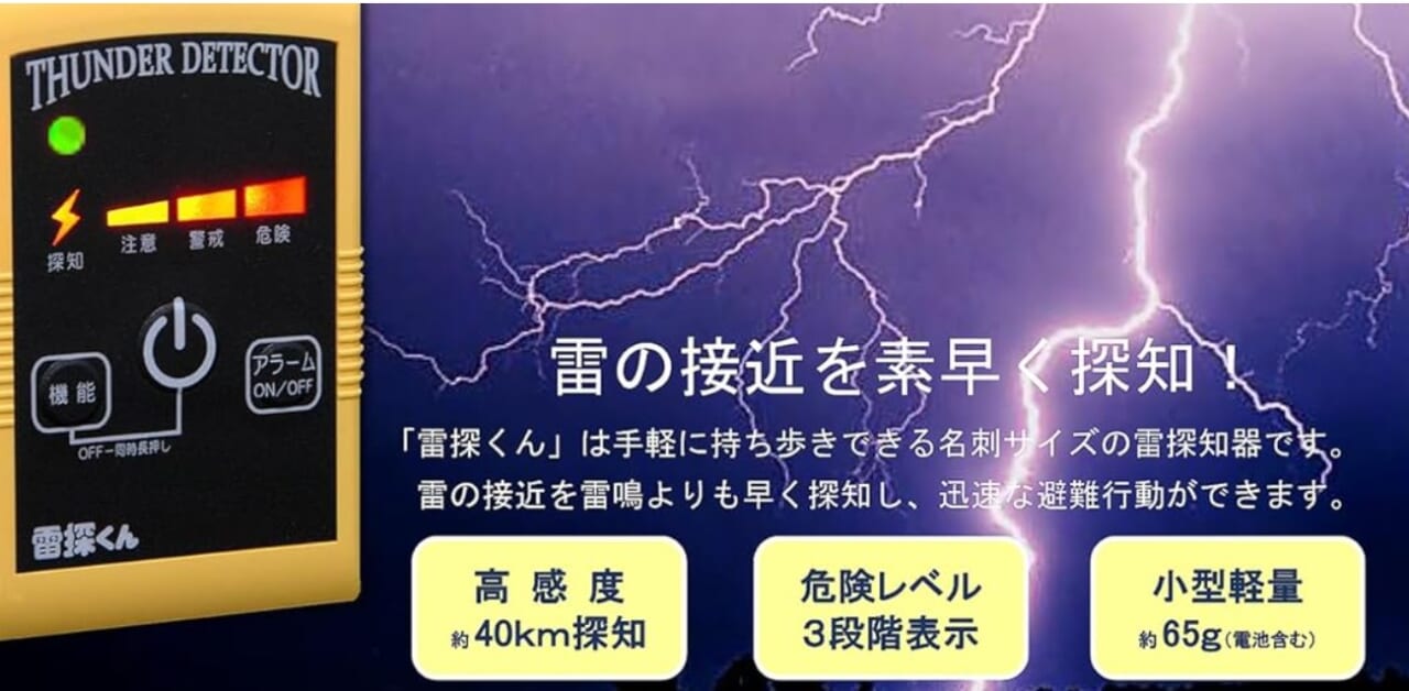 アウトドア活動中に雷の接近を素早く察知できる、携帯型雷探知器「雷探くん」が注目を集めています。
