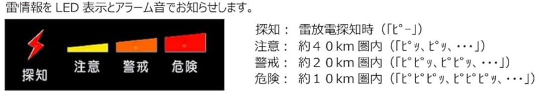 雷光や雷鳴を感知して、ユーザーに警告を発信することができます。