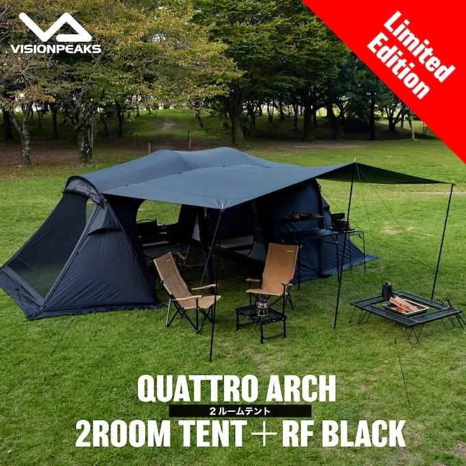 スポーツ用品販売チェーン「ヒマラヤ」が展開しているオリジナルアウトドアブランド「VISIONPEAKS」から、「クアトロアーチ2ルームテント+RF “BLACK”」が登場しました。