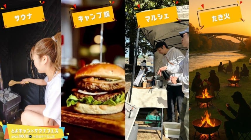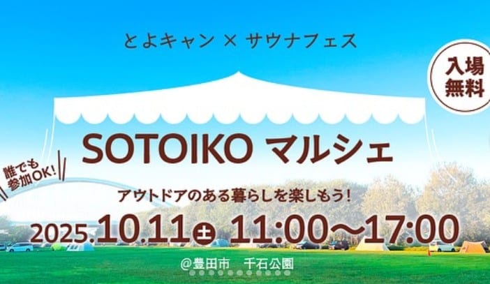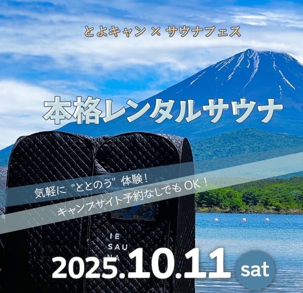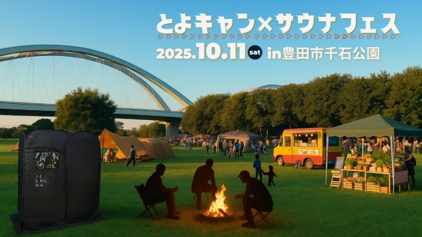 自然の中で「ととのう」非日常体験を満喫できるイベント「とよキャン×サウナフェス」が、2025年10月11日(土)、愛知県豊田市の「千石公園 特設会場」で開催されます。