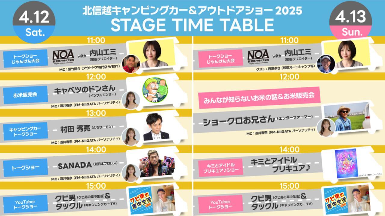 さらに、新日本プロレスのSANADA選手やインフルエンサーのキャベツのドンさん、FM-NIIGATAの酒井春奈さんといった新潟ゆかりの著名人も出演します。