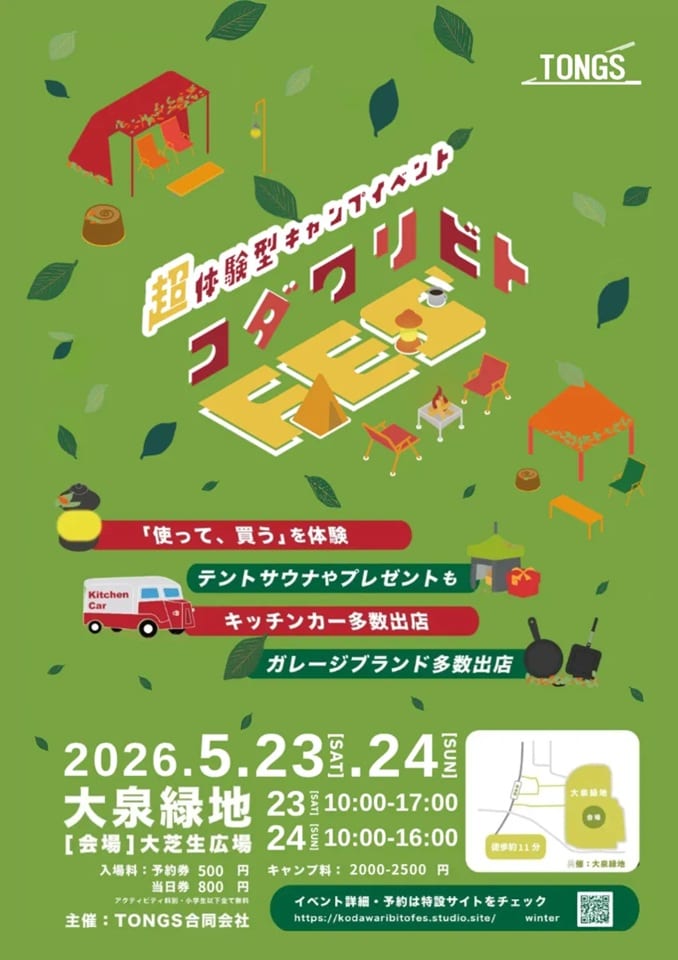 - 入場料:入場料(事前予約500円、当日800円/小学生以下無料) キャンプチケット1区画2,000円〜