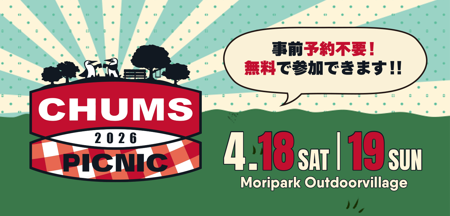 - New【東京都】4月18日(土)・19日(日)CHUMS PICNIC 2026