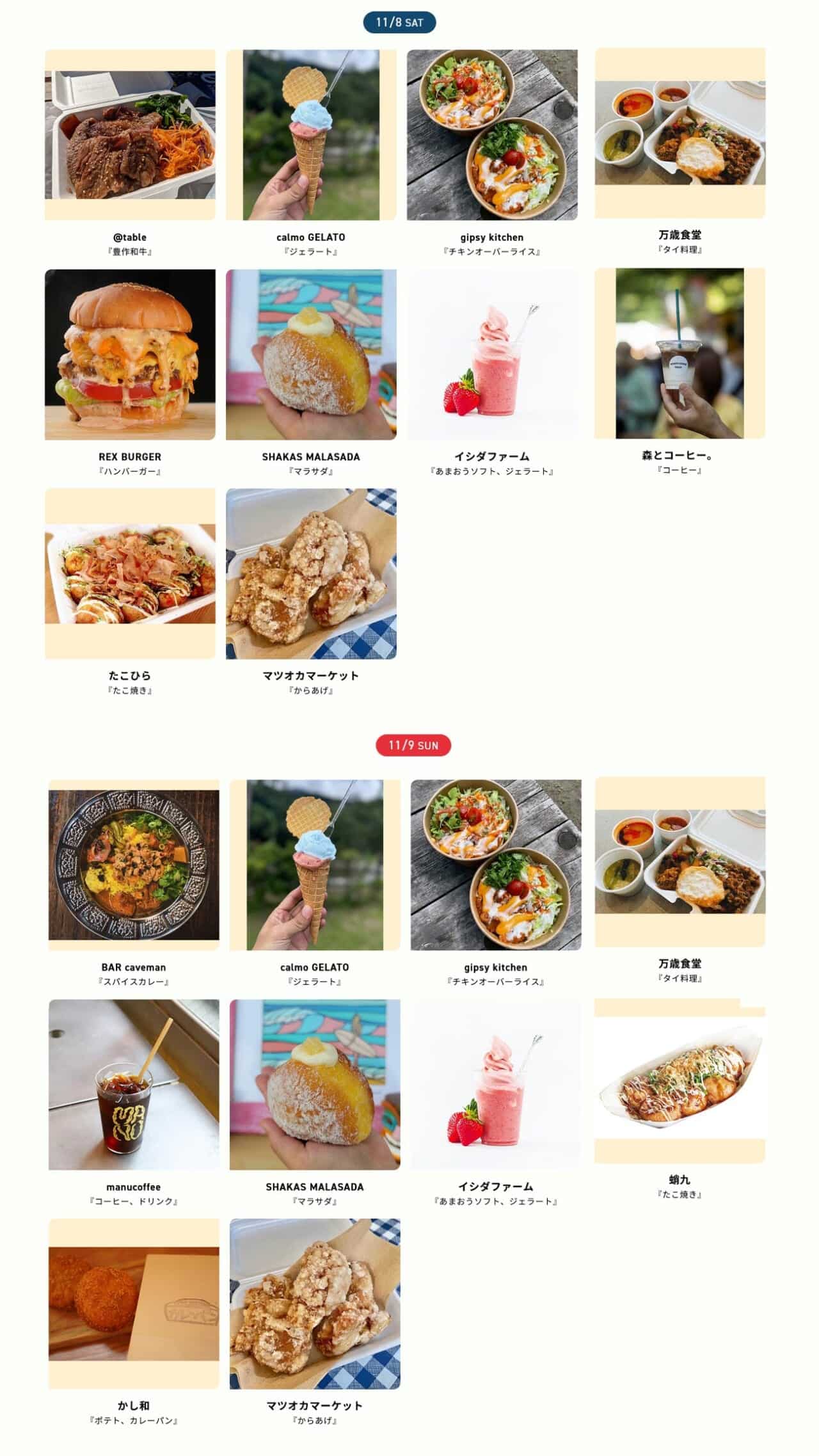 過去の開催では様々なキッチンカーが並び、食べ歩きも楽しめる雰囲気になっていました。さらにお子様向けのアトラクションコーナーも用意される予定なので、家族全員が楽しめるイベントになっています。