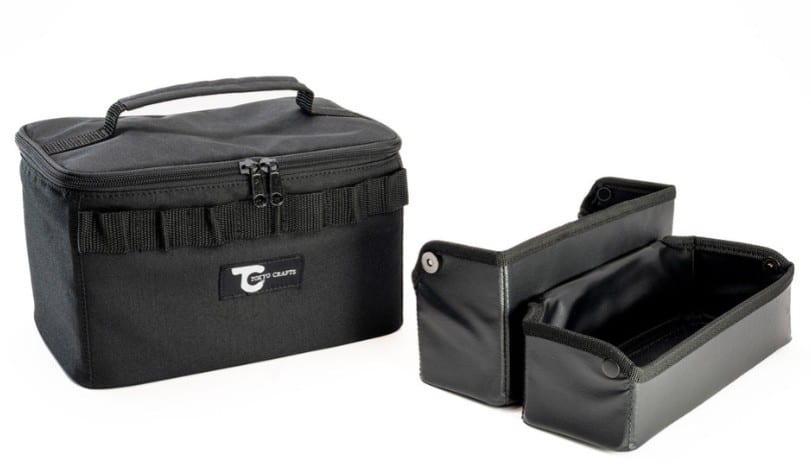 仕切り板で最大4区画に分けられ、ボトルやツールの形状に応じて柔軟にレイアウトできます。