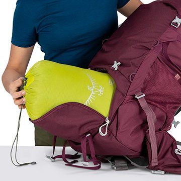 フローティング仕切り付きの寝袋コンパートメントが搭載されており、他の荷物に押しつぶされることなく、スムーズに寝袋を取り出すことができます。