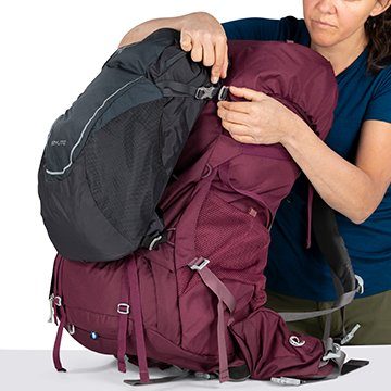 「RENN」は、13Lのアドオンパック「OSPREY DAYLITE」を取り付けることができます。トレッキングの日数に応じて簡単に容量を追加することができるので非常に便利です。