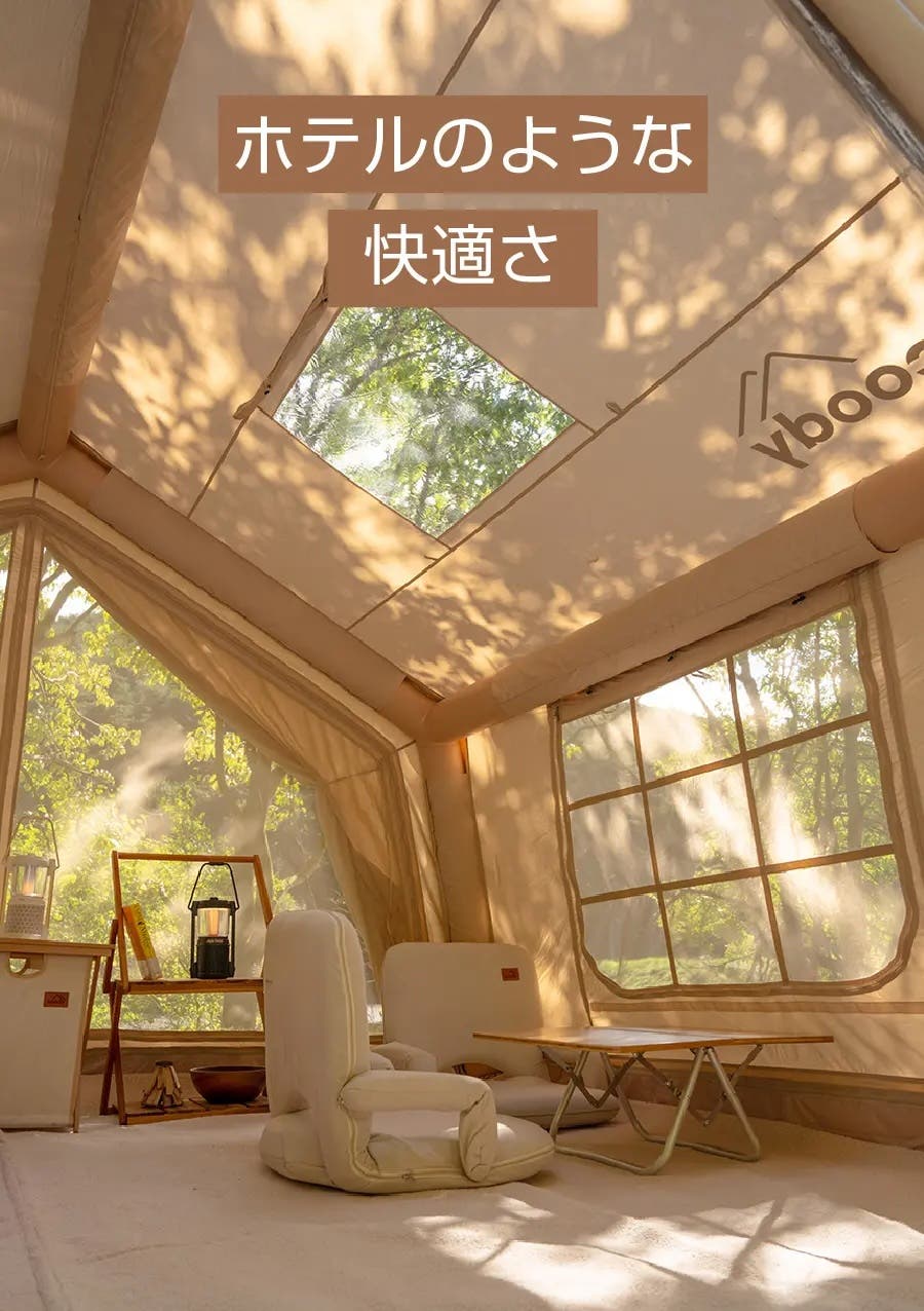 このテントで、グランピングのような新しいアウトドア体験をお楽しみください。