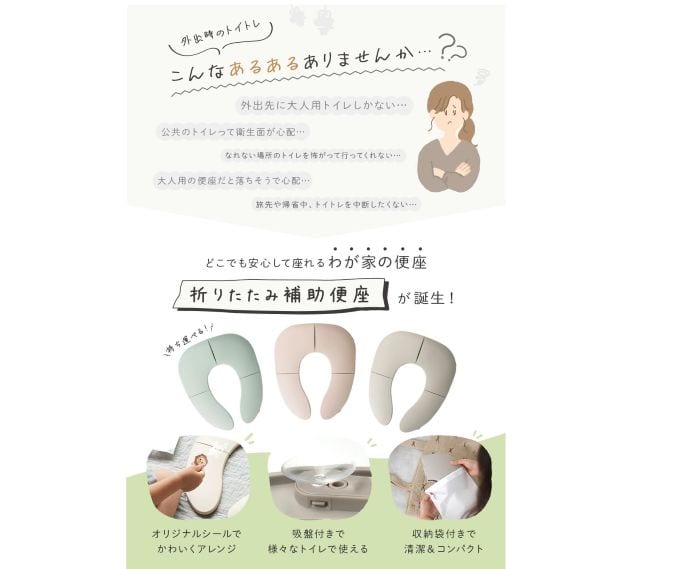 小さなお子さま連れに便利な補助便座です。