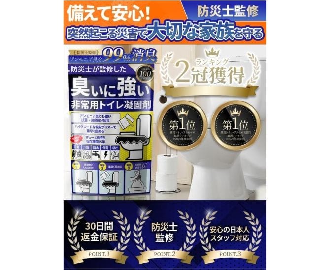 防災士が推奨する信頼性の高い携帯トイレセットです。