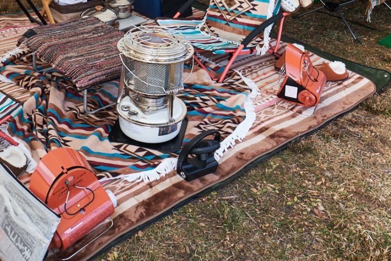 2. **暖房機器**:テント内での寒さ対策として、暖房機器(ヒーターや暖房マット)があると快適です。 3. **保温性の高い寝袋**:寒さ対策として、保温性の高い寝袋を持参しましょう。 4. **ホットドリンク用具**:寒い日には温かい飲み物が欠かせません。サーモスやマグカップを持っていくと便利です。