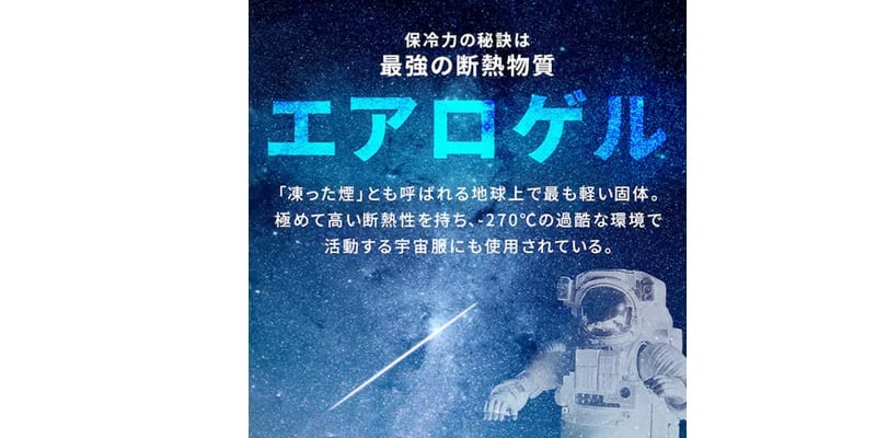 1. **高断熱性**: エアロゲルは多孔質で非常に高い断熱性を持っており、冷気が逃げにくい特性があります。