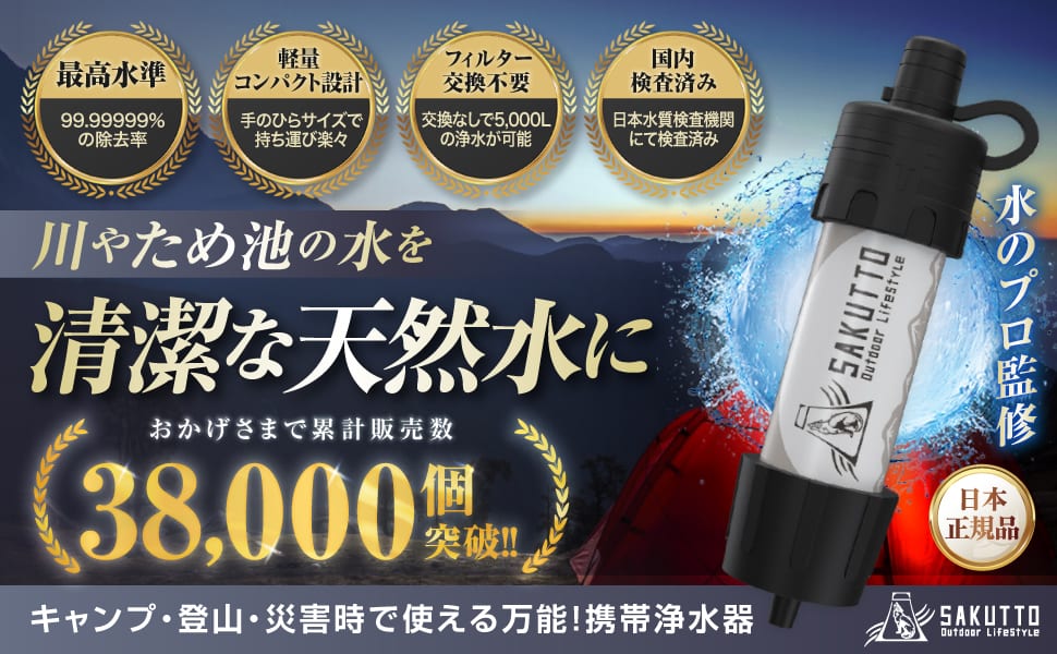 - プロも信頼するほどの安全品質『SAKUTTO 携帯浄水器』