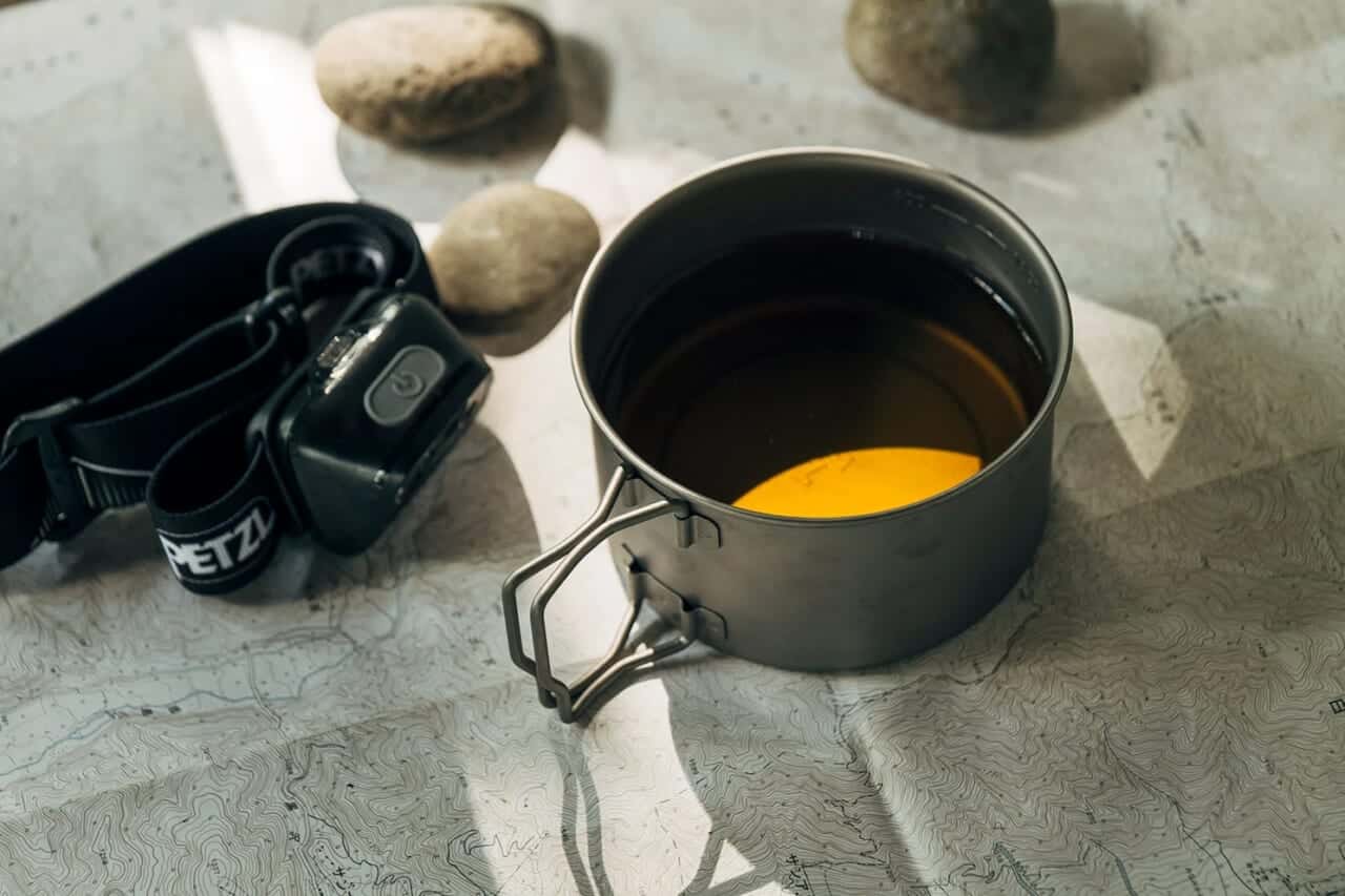 2人分の調理や湯沸かしに適した950mlの大容量チタンポット。