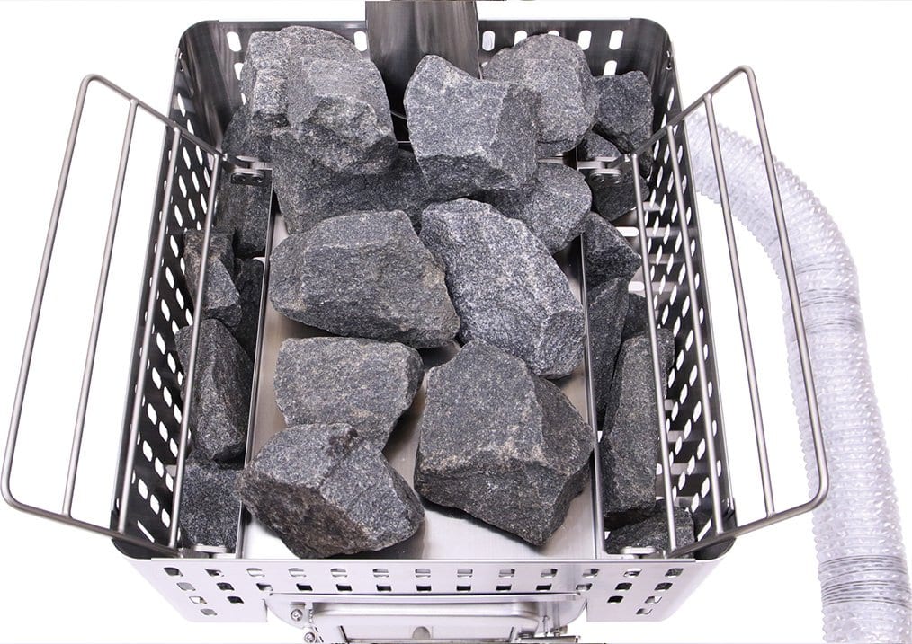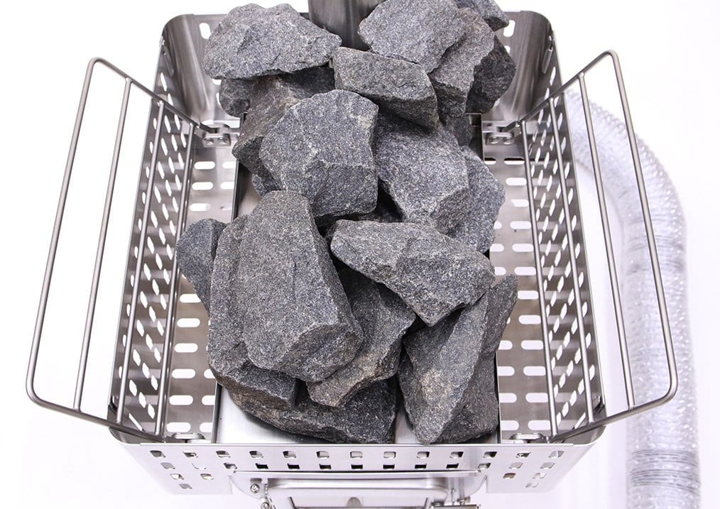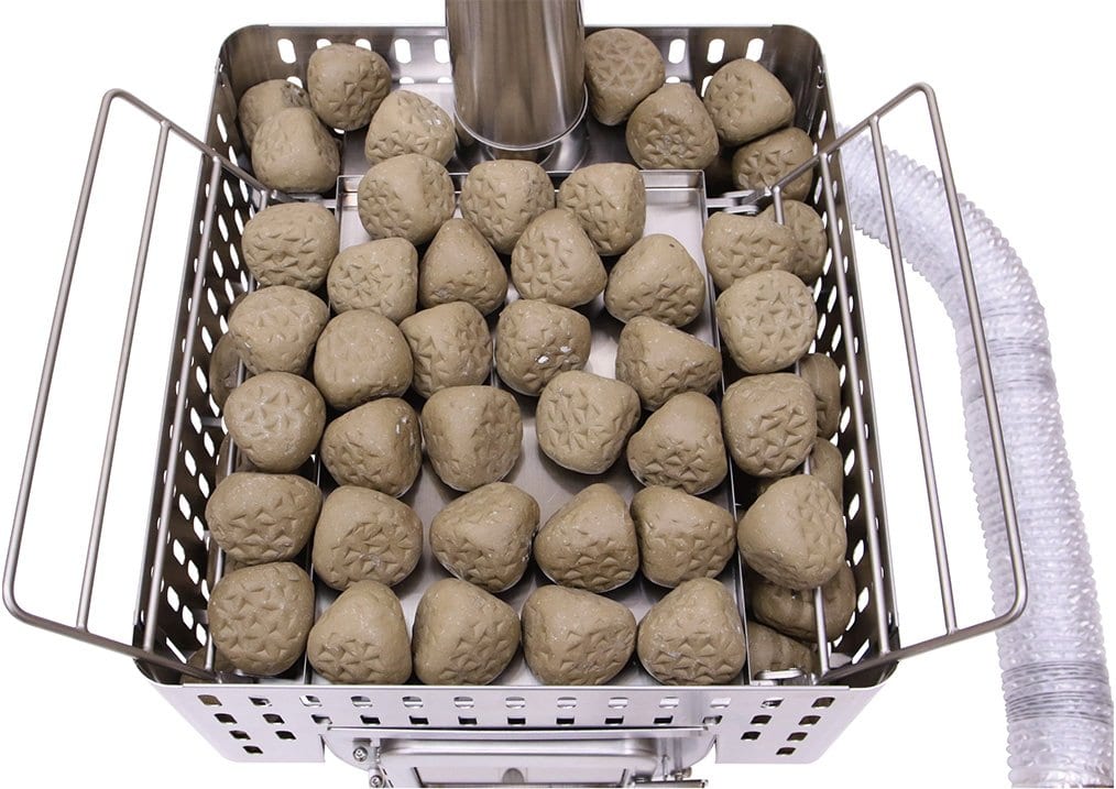 4. サウナストーンの設置: 炉内上部のスペースに、サウナストーンを均等に配置します。ストーンは使用前に水洗いし、乾燥させておきましょう。